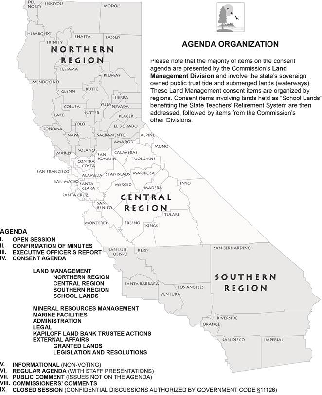 If you would like to receive electronic notification of Commission meetings, please visit our website at www.slc.ca.gov and go to the link under “Commission Meetings” to subscribe.